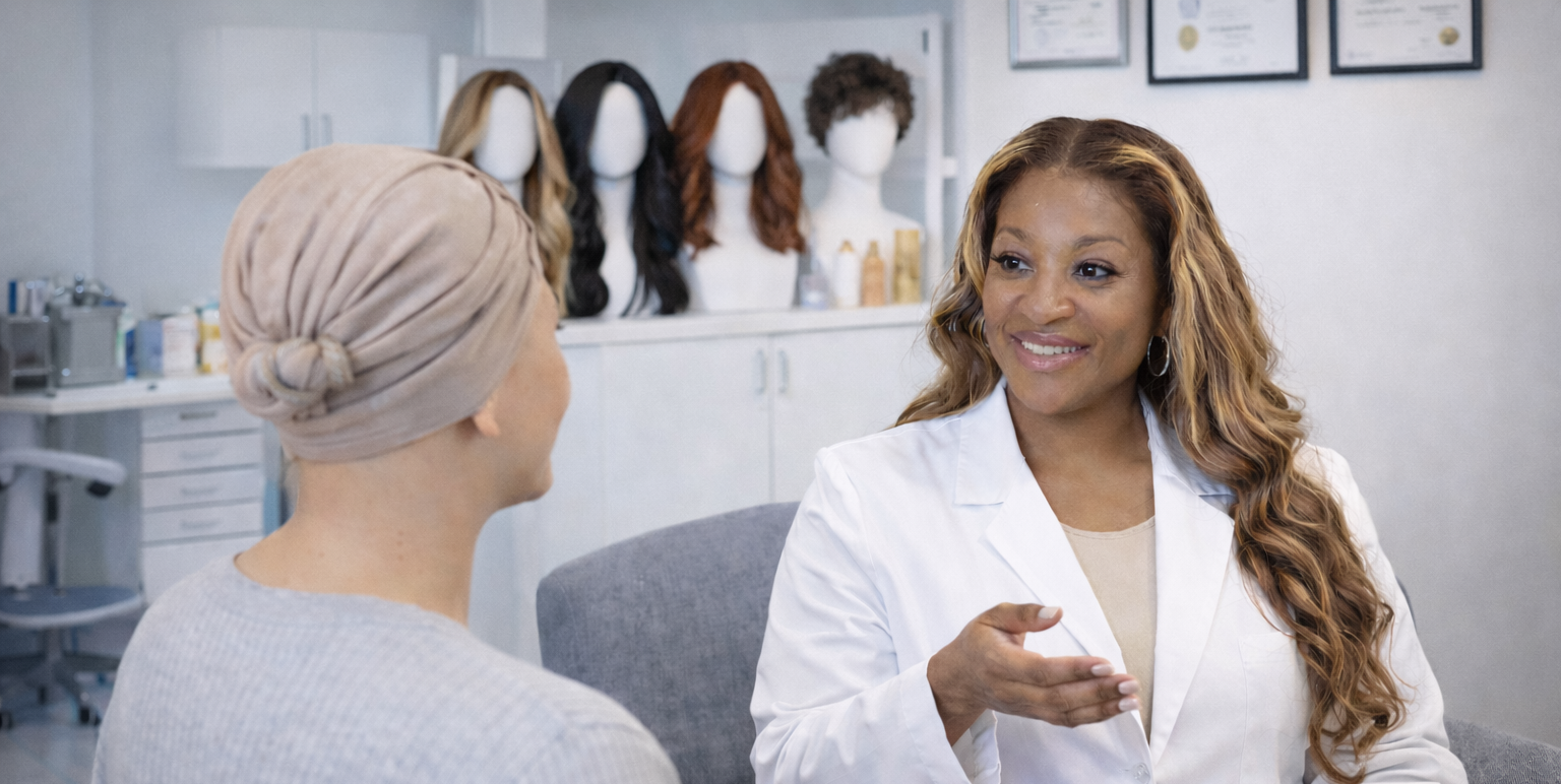 Your time with our Certified Cranial Prosthesis Specialists is private, unhurried, and entirely confidential. Whether you're navigating chemotherapy, alopecia, postpartum changes, traction recovery, or pediatric hair loss, we move at the pace your story requires.